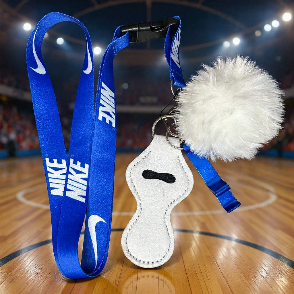 Nike Lanyard with Pom Pom Keychain & ChapStick Holder